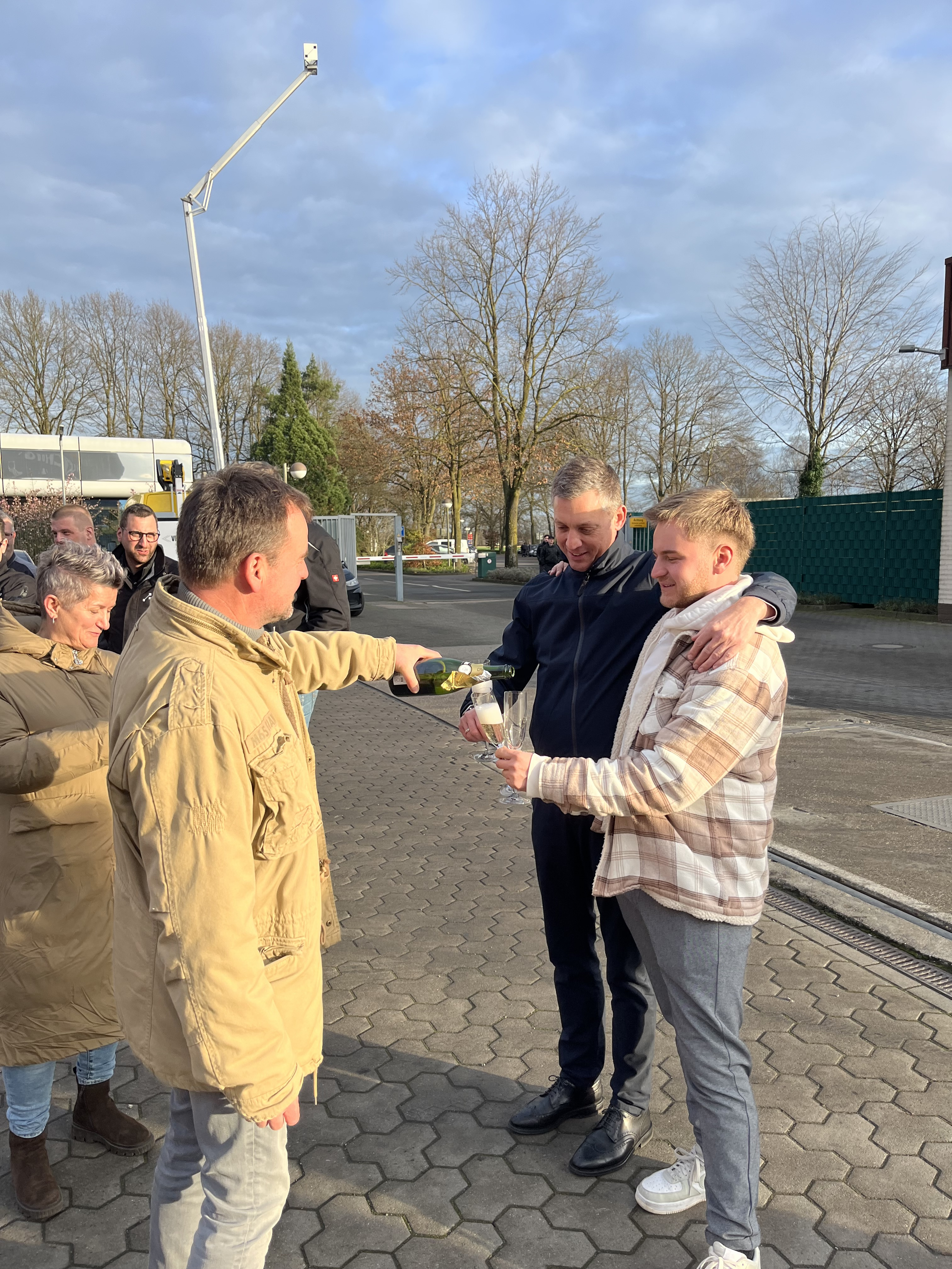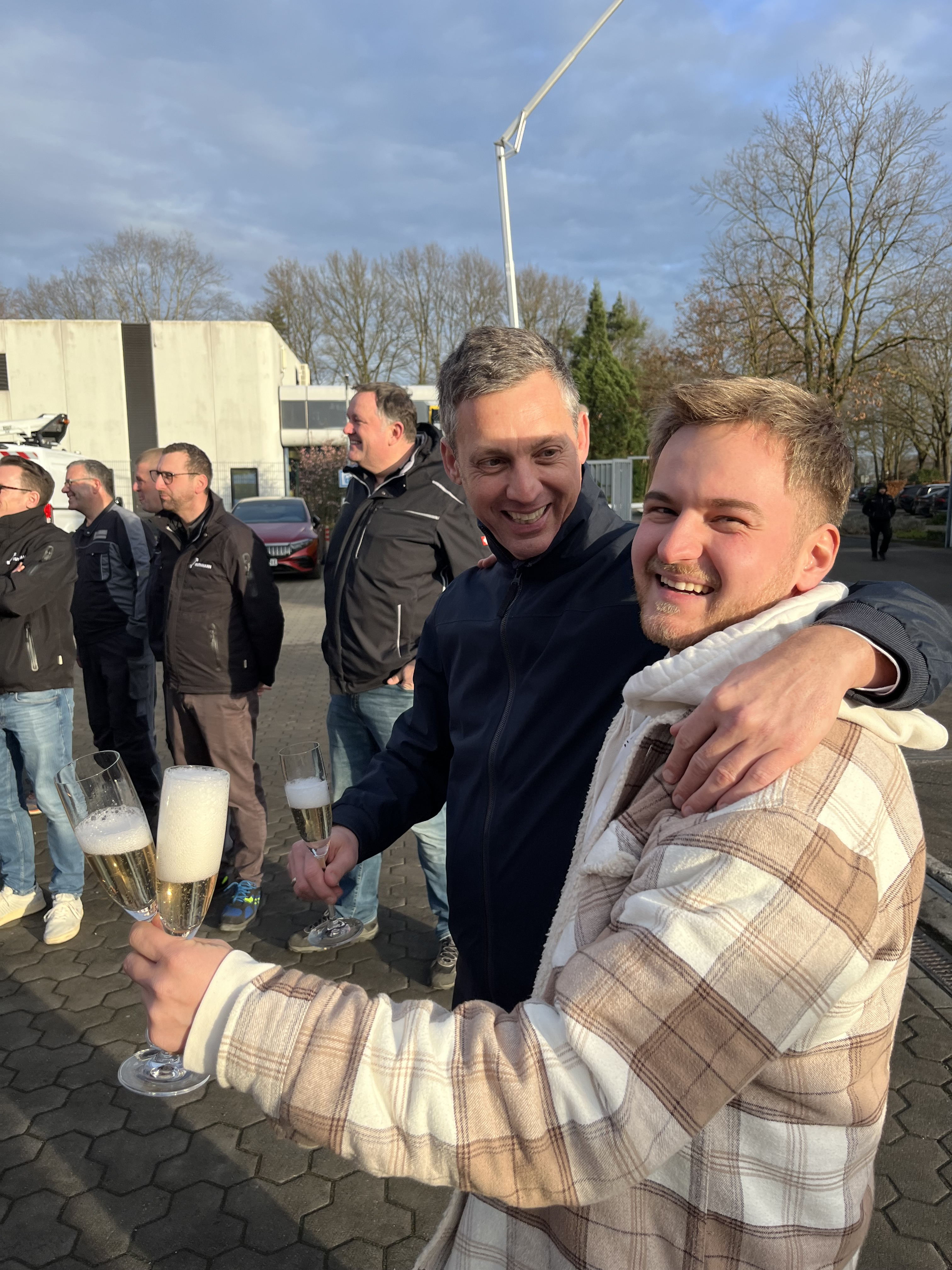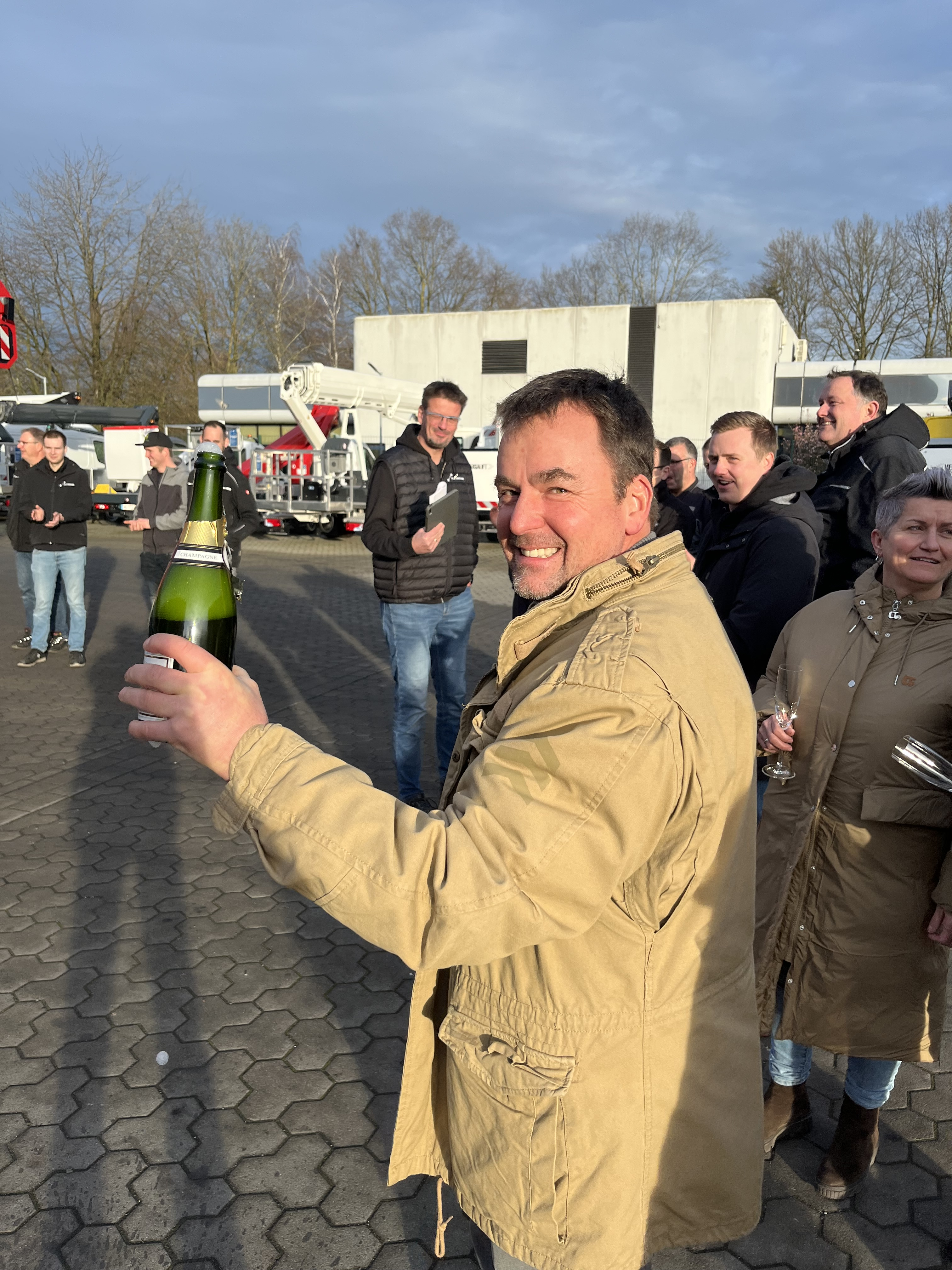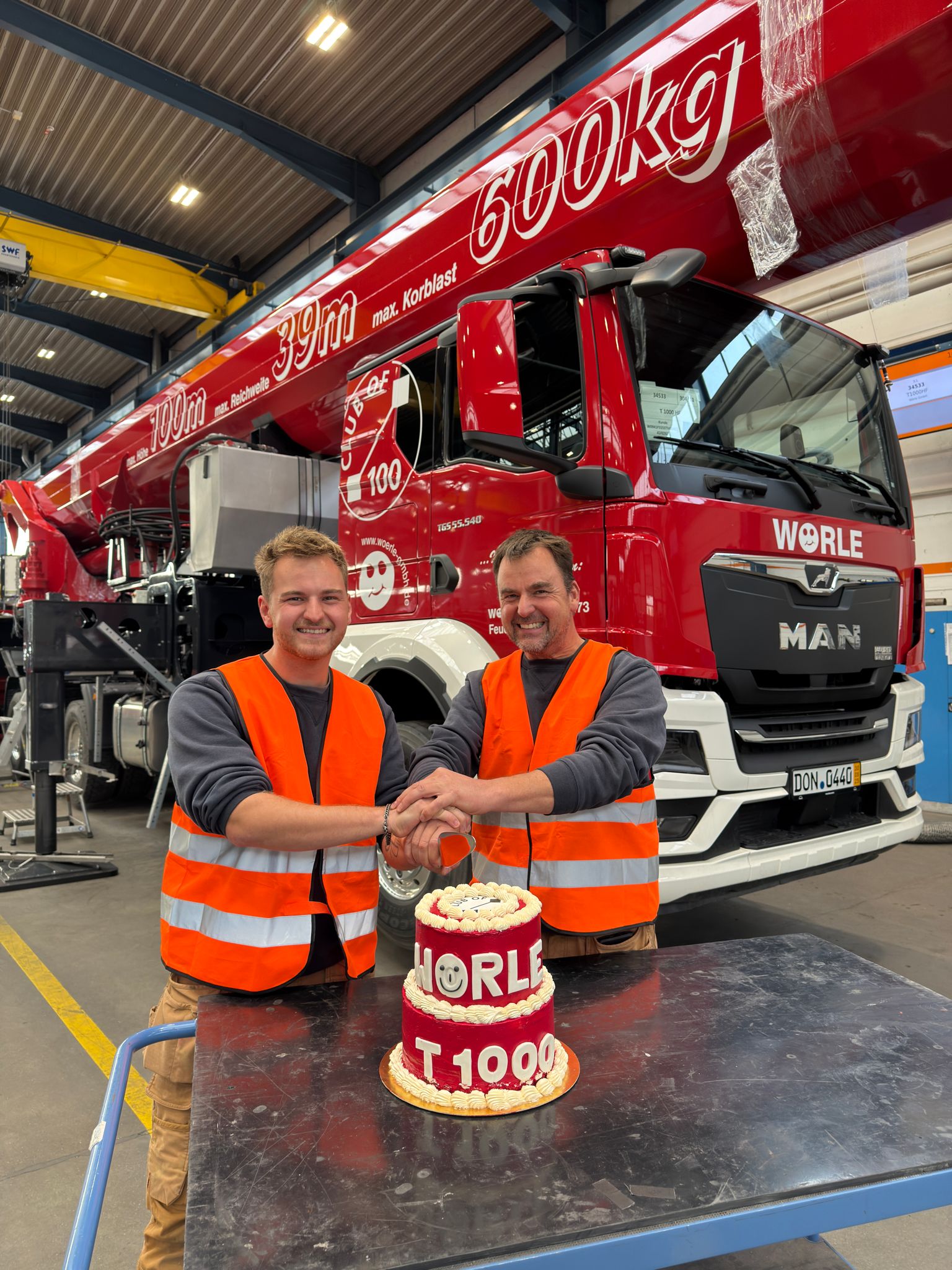 Le « mariage », c'est-à-dire le montage de la nacelle sur le véhicule porteur, a constitué un premier temps fort dans la réalisation de la nouvelle nacelle de 100 mètres. La famille Wörle était bien sûr présente. À ce moment-là, Jörg Wörle a pu mettre la main à la pâte et enfoncer le boulon décisif. Tout comme lors d'un vrai mariage, le gâteau était également au rendez-vous. Jörg et Felix Wörle l'ont découpé ensemble et ont fait la fête avec l'équipe Ruthmann.