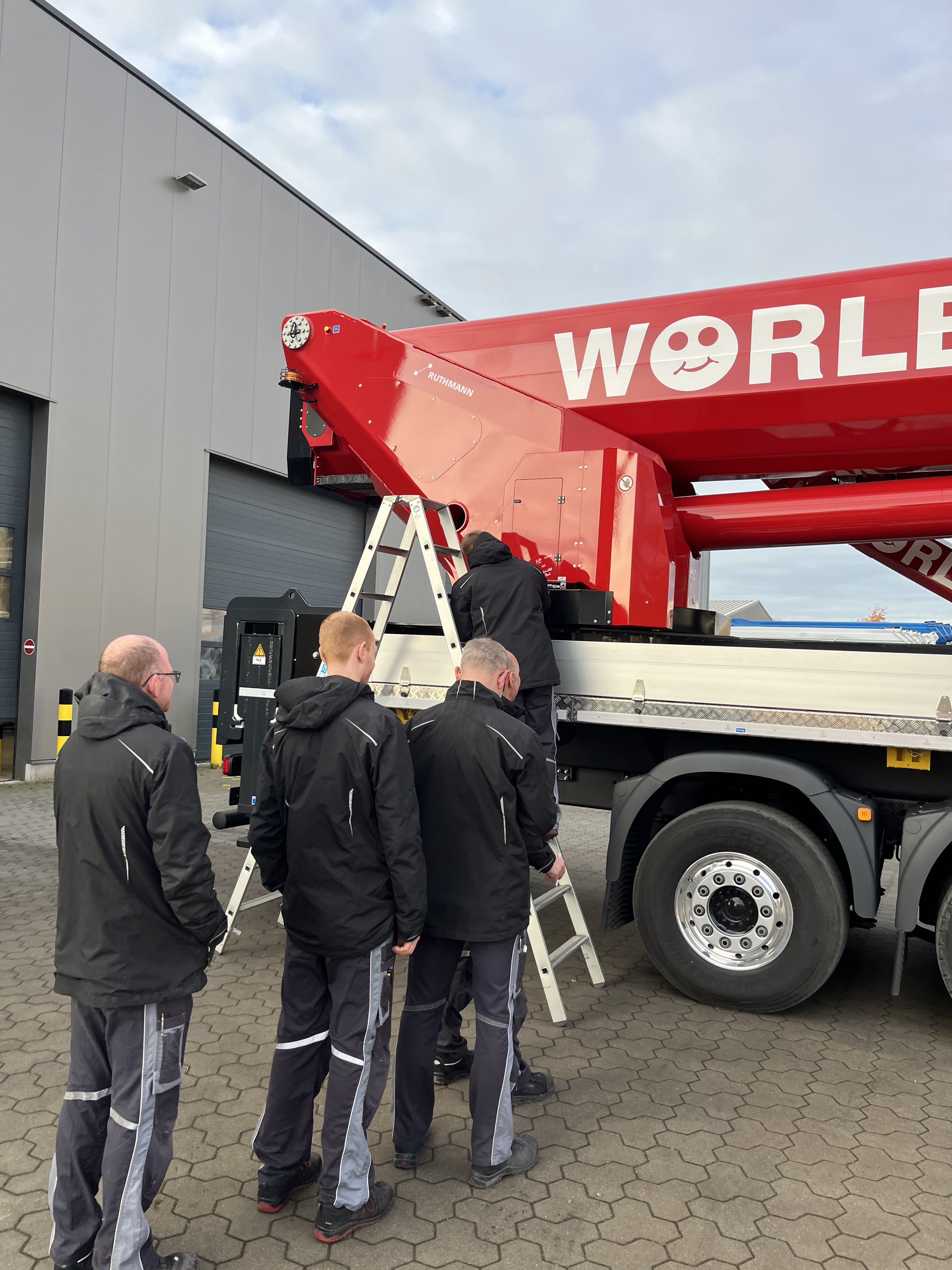 Ruthmann remercie la société Wörle GmbH pour sa confiance, son étroite collaboration et son enthousiasme et lui souhaite de nombreuses interventions réussies et en toute sécurité avec le nouveau STEIGER® T 1000 HF.